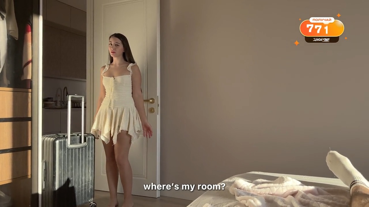 Разговоры — 00:17, 05:17, 12:01; раздевается — 03:22; дрочит ему — 07:28; секс боком — 08:31; миссионерская — 10:10; скачет на члене — 11:08; кончил внутрь — 11:47